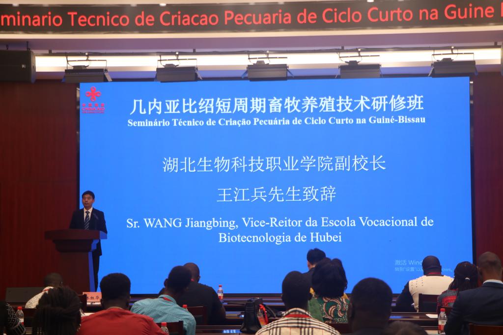 王江兵代表学校致辞。他表示,湖北生物科技职业学院作为一所以农业和生物科技为特色的高职院校,始终以服务国家战略、助力乡村振兴为己任。学校将充分利用自身优势,根据几内亚比绍短周期畜牧业发展的实际需求,精心设计课程内容,竭诚为学员打造优质的学习平台,创造良好的学习环境,让每一位学员都能在此次研修中收获满满,不虚此行。
