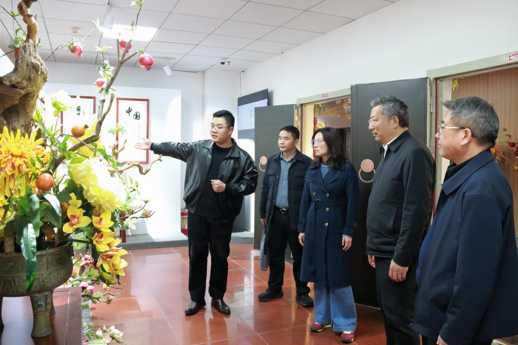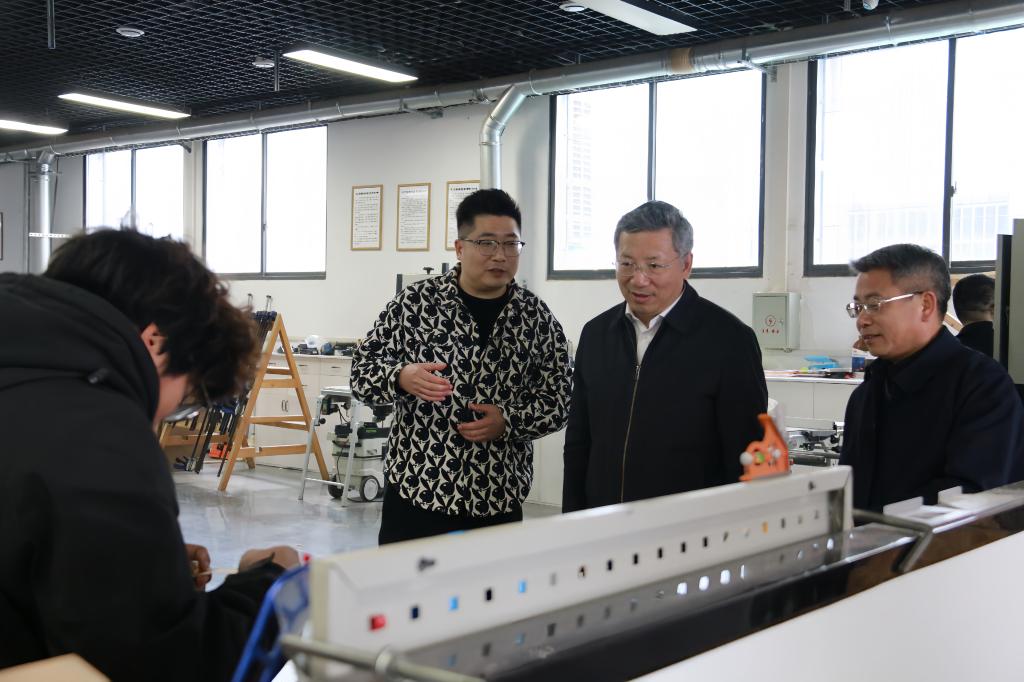 李峰一行在石道良陪同下,先后参观了世界技能大赛家具制作项目、花艺项目中国集训基地,以及大学生创新创业孵化基地、古建筑实训中心、机电教学实习基地、园林植物实训中心等教学实践场所。
