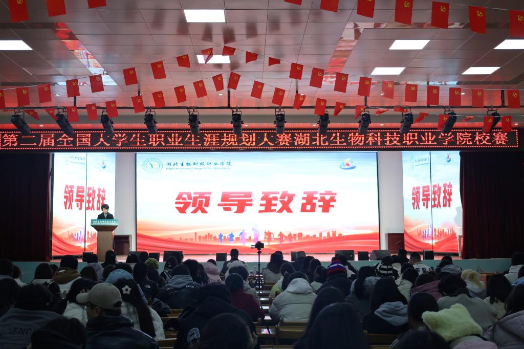 12月10日,第二届全国大学生职业规划大赛湖北生物科技职业学院校赛决赛在大学生活动中心举办。校党委委员、副校长杨艳芳出席大赛并致辞。