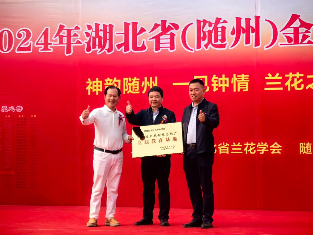 龙翔代表学校接受湖北省兰花学会授予的“湖北省兰花种植与推广实践教育基地”以及随州市兰花学会授予的“随州市人才培养与教育实践基地”牌匾。
