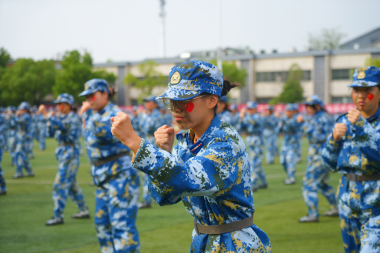 大会伊始,全体新生齐唱《强军战歌》,在庄严的升旗仪式后,军训团依次进行了分列式和汇报表演。队列方阵在激昂的进行曲中踏着整齐的步伐,神采飞扬地从主席台前走过。国旗方阵挥舞着小红旗,跟随着音符的跳动。最后表演了刺杀操、匕首操、擒敌拳、应急棍术动作,抖擞的精神,娴熟的技能,展示了我校新生自强不息、拼搏进取的精神风貌,精彩的表演赢得在场师生阵阵掌声。