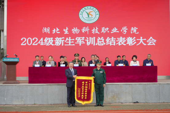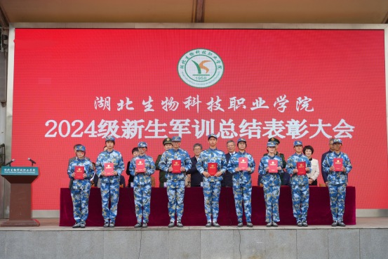 校党委副书记、纪委书记潘彦宣读《关于表彰2024级新生军训先进集体和先进个人的决定》,与会领导为受表彰先进集体及个人颁奖。