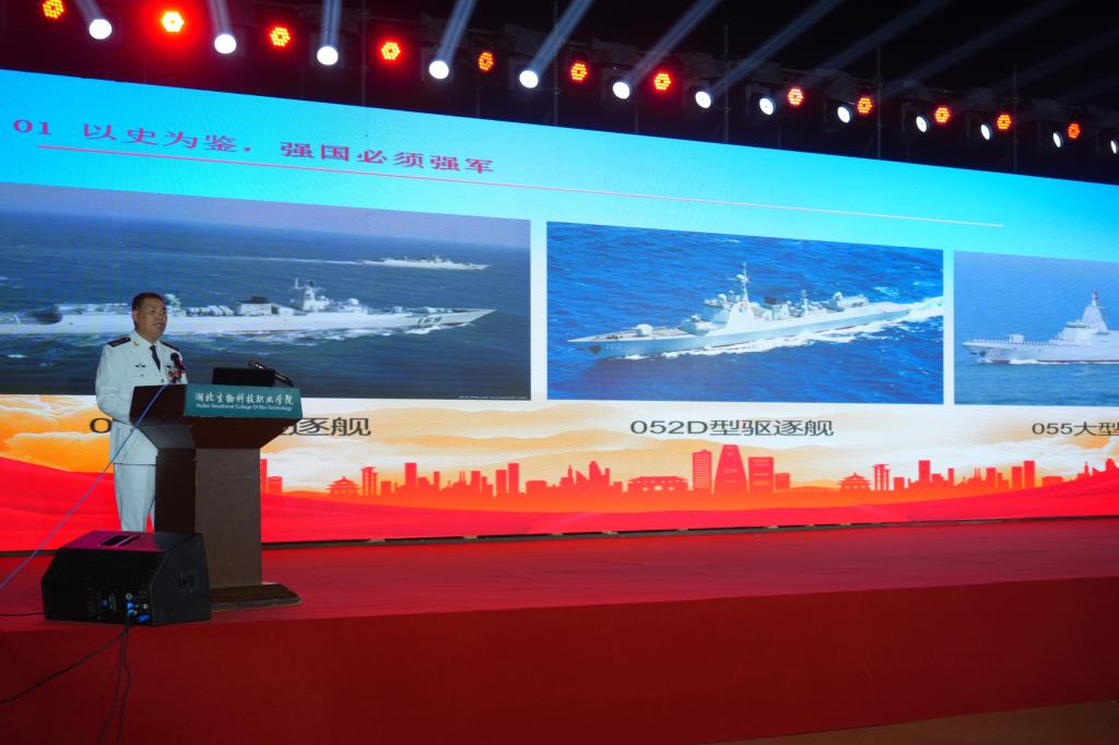 省直机关关工委“五老”宣讲员顾甲飞作《铸国防显威武担大国责任》主题宣讲,他从国家发展的历史背景、30余载的从军经历及当代大学生在国防事业中应担当的责任等方面,结合大量图片和案例,为全体24级新生们上了一堂内容丰富、振奋人心的红色教育宣讲。