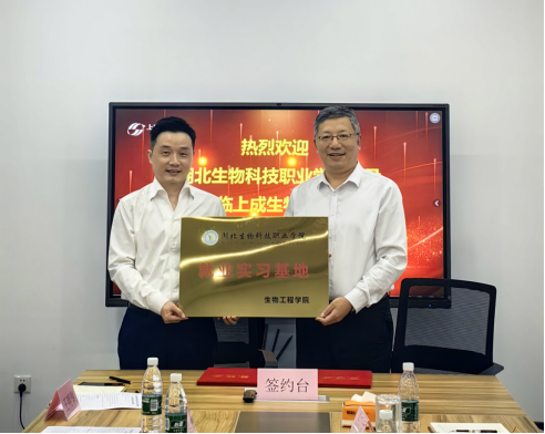 10月16日上午,校党委副书记、校长李峰,校党委委员、党委宣传部部长、党政办公室主任王玲一行来到武汉上成生物科技有限公司开展合作交流,受到了公司董事长陈建军、公司总经理任万强和武汉东湖高新国际健康城执行总经理练志强等的热烈欢迎。校长李峰和董事长陈建军郑重地签署了校企合作协议,武汉上成生物科技有限公司被授予“湖北生物科技职业学院就业实习基地” 牌匾,这是校企双方深化合作的一个重要里程碑。