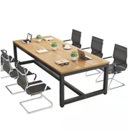 规格:3000*1200*760mm;(可按现场需求定制);一桌8-10椅。胡桃桌+棕色椅。 |