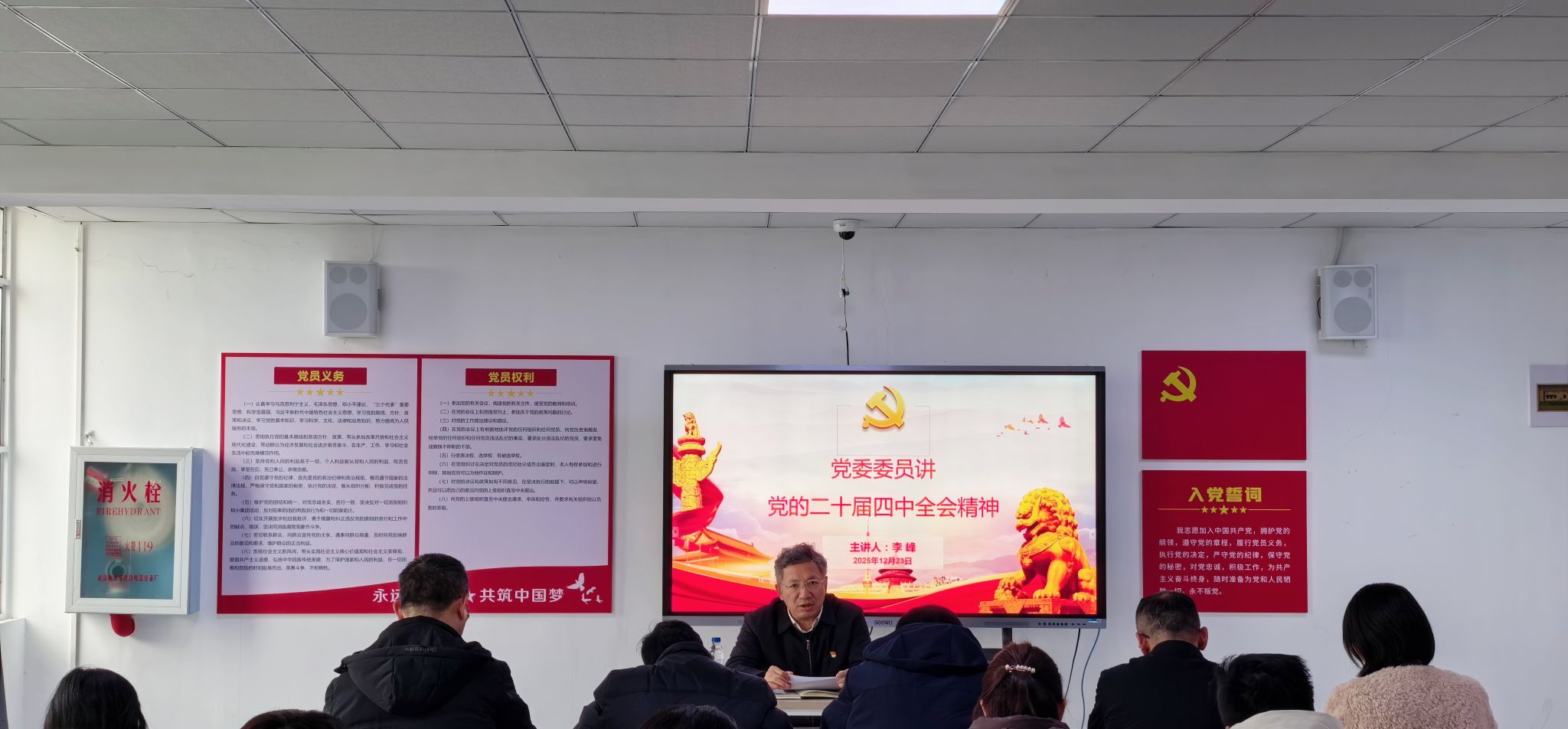 12月23日,校党委副书记、校长李峰为生物工程学院党支部和后勤党支部全体党员宣讲党的二十届四中全会精神。