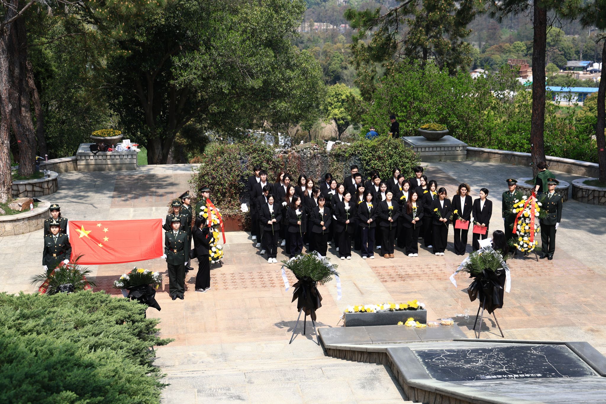 4月1日,学校组织47名师生代表前往石门峰烈士陵园,开展“缅怀革命先烈 传承红色基因”清明祭扫活动。