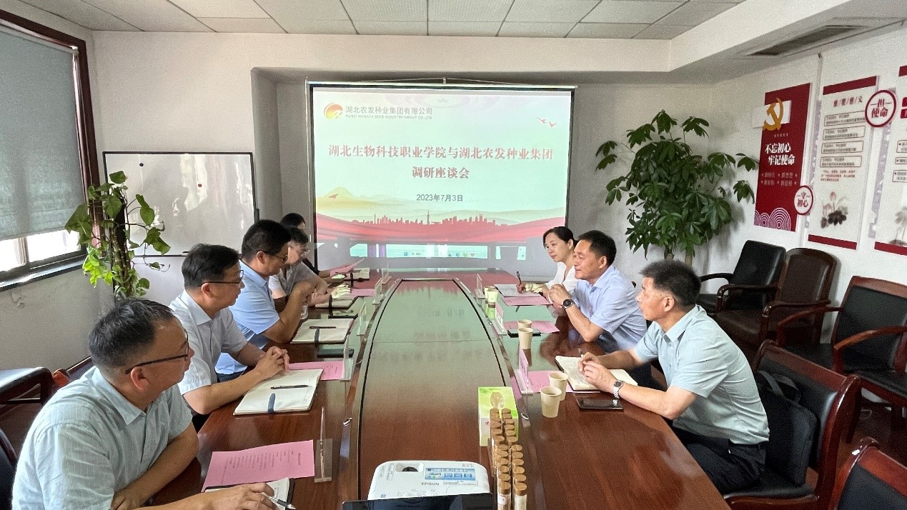 双方在湖北农发种业集团有限公司展开座谈。公司董事长丁辉俊对我校调研组一行表示热烈欢迎,并详细介绍了公司发展规模、组织架构、生产科研、基地建设、战略计划及对高职层次的人才需求情况。他提出,未来种子行业大发展过程中,对人才需求的总量必然会有所增长,公司愿意为毕业生提供长足发展空间。
