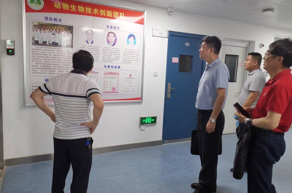 华再东研究员为曾开红一行讲解动物生物技术创新团队基本情况