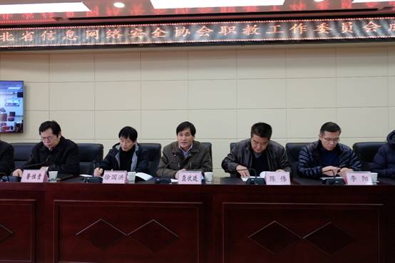 湖北省信息网络安全协会会长李阳及秘书长夏天勇分别发表讲话,就湖北省信息网络安全协会简介、新版协会章程及分支结构管理办法进行解读,并宣读了湖北省民政厅关于批准成立湖北省信息网络安全协会职教工作委员会的文件精神,提议湖北省信息网络安全协会职教工作委员会主任及秘书长人选。